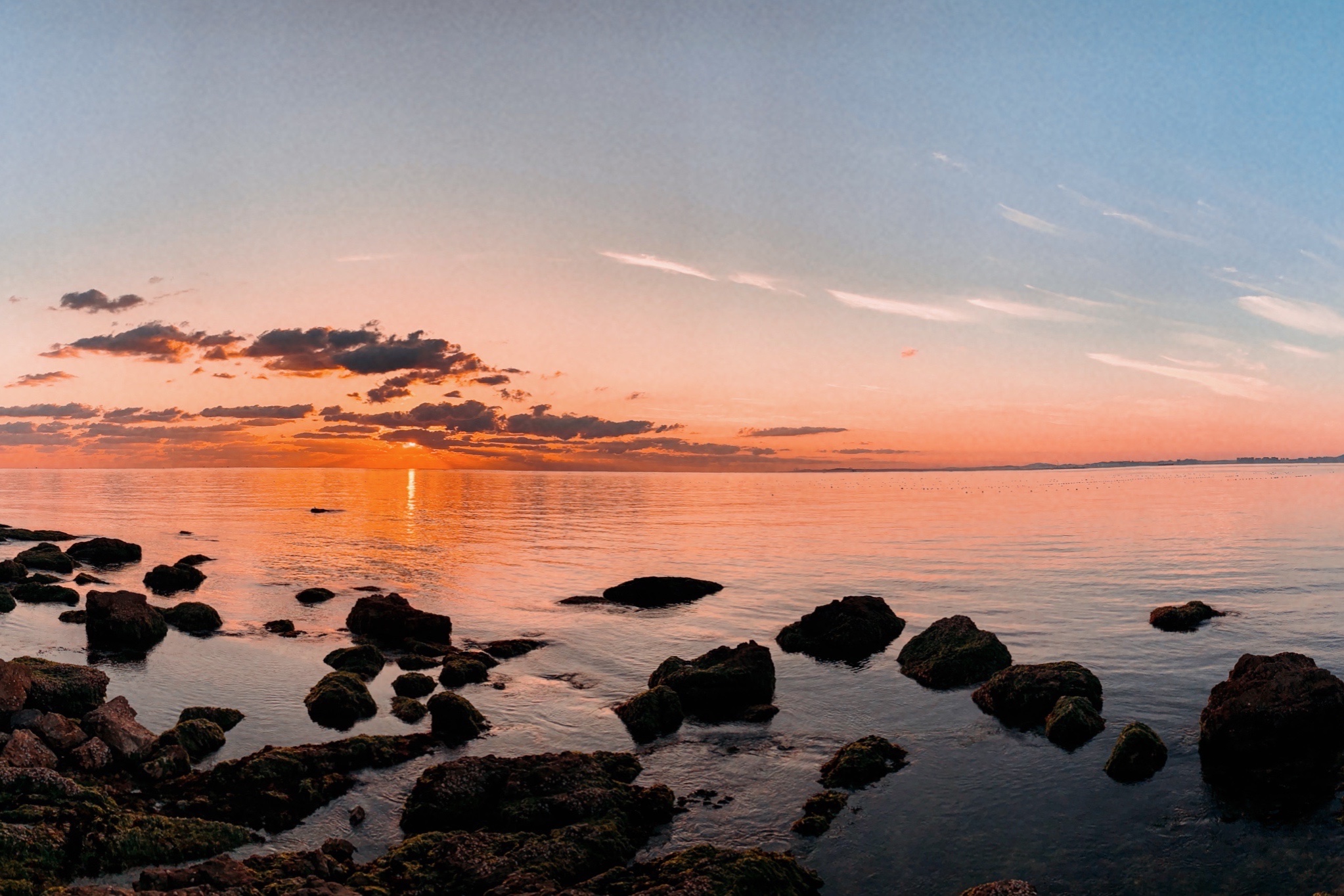 Day2-10-5 早起海边看日出-坐船去 长岛 -船上喂海鸥-月亮湾-九丈崖-看日落-回渔家乐吃晚饭