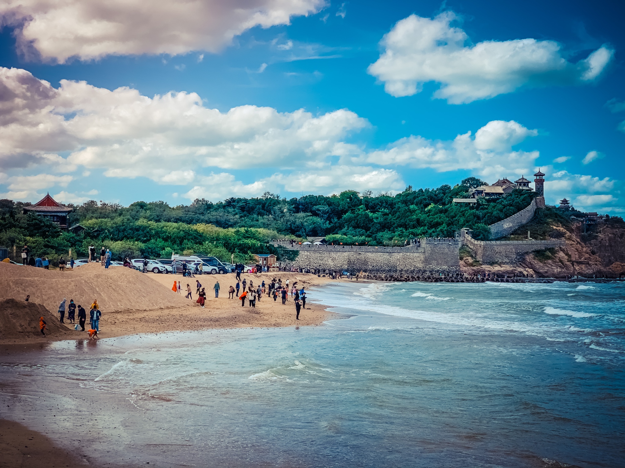Day1-10-4 吃 蓬莱 小面-海边散步-看”人间仙境“ 蓬莱 阁-傍晚海边玩水、抓螃蟹-吃地道川菜-逛步行街