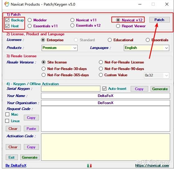 在Patch 中选择Backup、Host、Navicat v12(也有可能是Navicat v15)这三个,默认就是勾选这三个,点击Patch