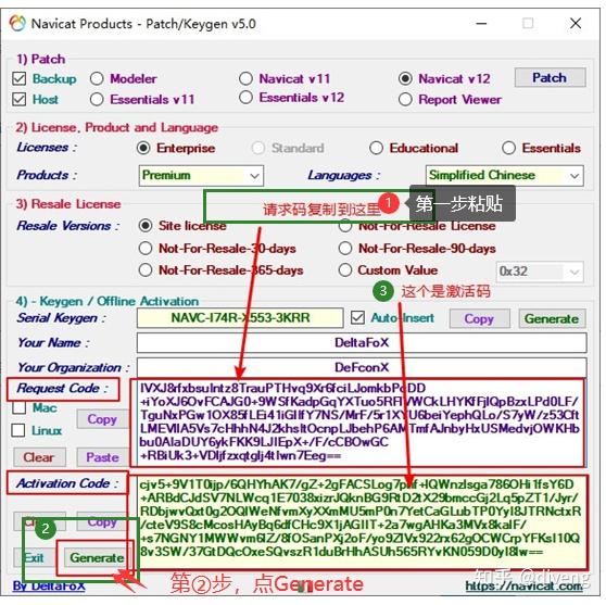将请求码粘贴到①,然后②再点Gennerate,③将生成的激活码复制一份