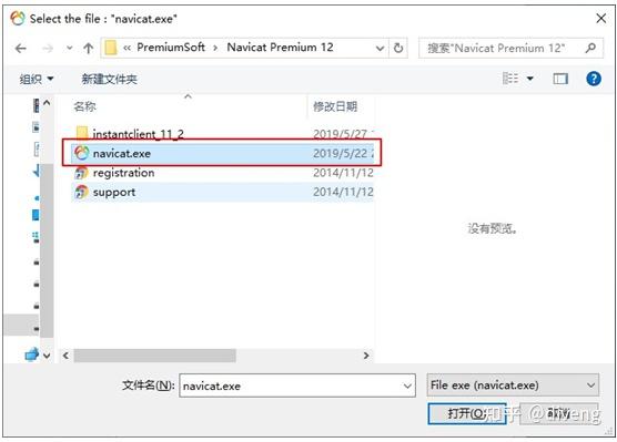 点击Patch按钮就找到Navicat Premium 12的安装目录的navicat.exe文件